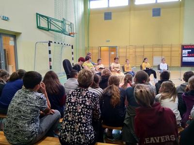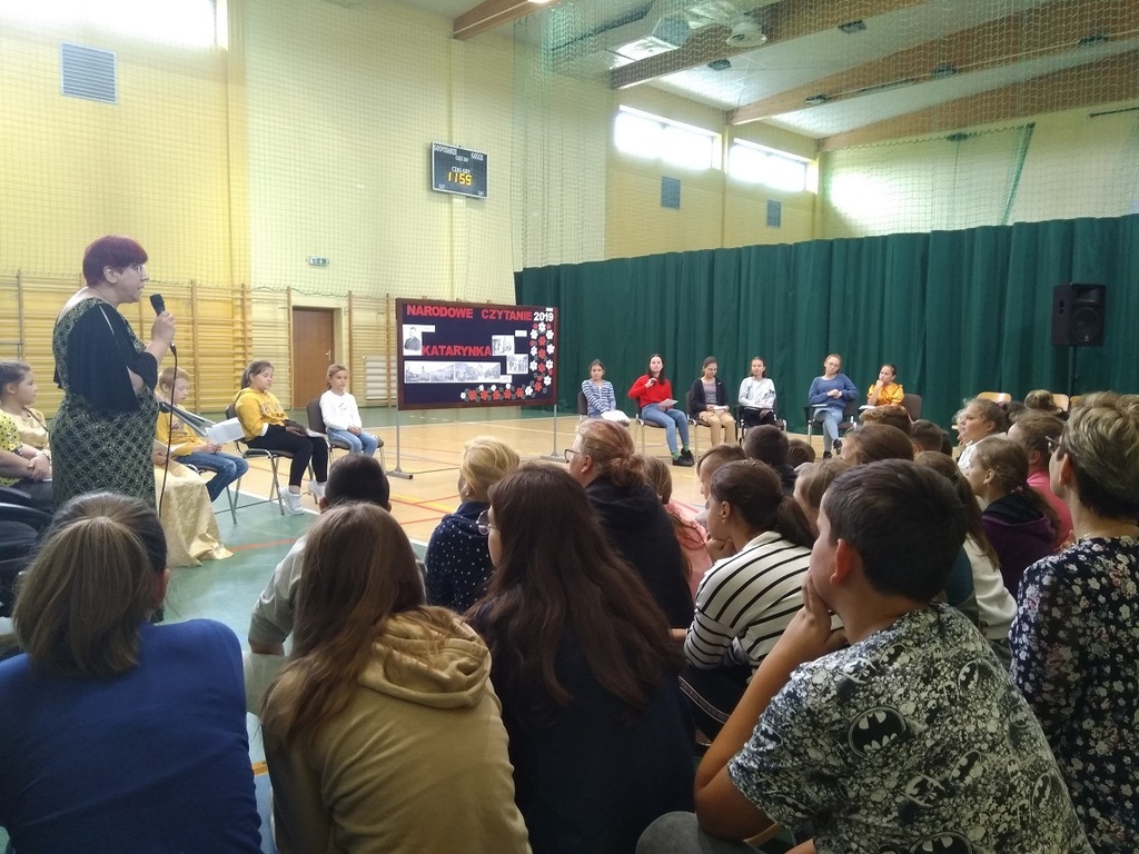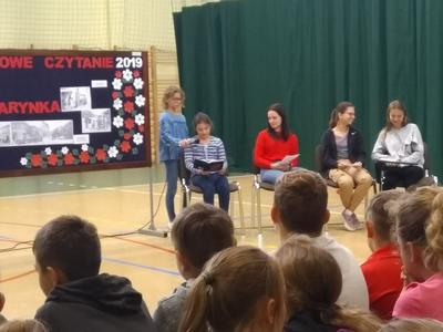 10 września 2019 roku o godzinie 11.55 odbyła sie szkolna akcja czytelnicza ,,Narodowe Czytanie 2019. Nowele polskie". Akcję zorganizowała bibliotekarka Aurelia Kaszkowiak oraz polonistki Beata Kucharska i Agnieszka Karge. Do wspólnej lektury, po konsultacji z uczniami, wybraliśmy ,,Katarynkę" Bolesława Prusa. W głośnym czytaniu noweli udział wzięli uczniowie z klas IV-VIII - Aleksandra Kolarska, Oliwia Grajek, Stanisław Woźniak, Zofia Kozubowska, Michalina Piechocka, Marta Pacholak oraz Maria Kozubowska. Grono pedagogiczne reprezentowały - Aurelia Kaszkowiak oraz Beata Kucharska. Od strony technicznej nad przebiegiem akcji czuwali uczniowie - Marek Lubik (fotograf), Weronika Ratajczak (mikrofon). Kostiumy przygotowały - Gabriela Buśko, Magdalena Witkowska i Zuzanna Wójcik. Serdecznie dziękujemy całej społeczności szkolnej za wzięcie udziału w spotkaniu.