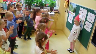 Przedszkolaki z oddziału 6,5 latków miały pracowity tydzień. Wyruszyły na spotkanie liter i cyfr spotykając na swojej drodze literę O, o oraz cyfry 1 i 2. Królową poznanej litery była Oliwia, dlatego koledzy wręczyli jej koronę i nagrodzili gromkimi brawami.