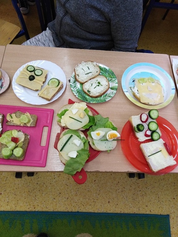 Śniadanie daje moc 8.10.2019 r. uczniowie klasy II przygotowali kolorowe, zdrowe kanapki na drugie śniadanie. Było dużo pomysłów i zabawy. Niektóre kanapki to prawdziwe dzieła sztuki kulinarnej. Wszystkie smakowały wyśmienicie. Zdjęcia Zobacz również Balonem malowanie Kulinarne zabawy pierwszoklasistów. Pyszne stworki... Zwycięzcy konkursu,, Naj...naj...berecik" Śniadanie daje moc UDZIAŁ W AKCJI "PUSZKA DLA MALUSZKA" DOWOZY I PRZYWOZY 14.10.2019r. 08 października 2019 Aktualności Wydrukuj Udostępnij Wyświetlono: 480