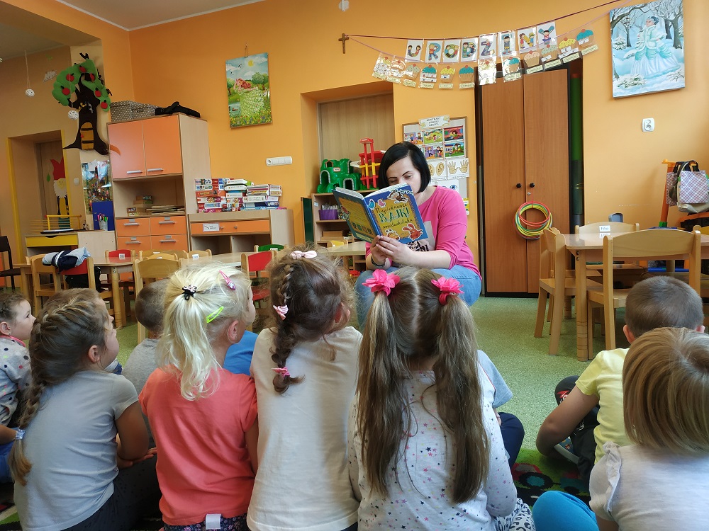 Systematyczny kontakt dziecka z książką aktywizuje jego rozwój intelektualny i emocjonalny, budzi wrażliwość estetyczną, sprzyja rozwijaniu postaw twórczych oraz wyzwala ekspresję dziecięcą. W ramach realizacji projektu edukacyjnego "Przygoda z książką" zaproszamy rodziców do czytania bajek dzieciom w czasie odpoczynku po obiedzie. Pierwszą odważną mamą, która nas odwiedziła była mama Antka, która zasłuchanym dzieciom przeczytała dwie ulubione bajki syna.