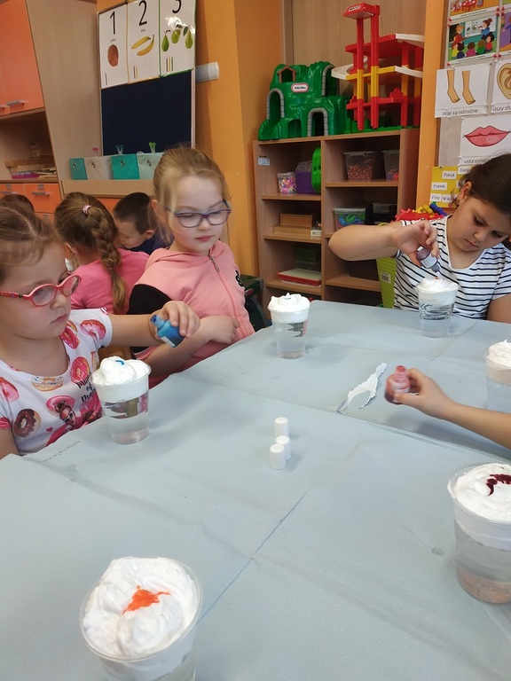 Jeśli chodzi o eksperymenty to te związane z wodą są zdecydowanie najbardziej lubiane przez dzieci, stąd kolejny pomysł na „mokre eksperymenty”. Tym razem w ramach spotkania "Klubu Małego Badacza" sprawdzaliśmy jak wywołać deszcz, ale nie taki zwykły tylko kolorowy! Oczywiście deszcz nie będzie nam kapał na głowy, ponieważ zamknęliśmy go w kubeczkach.