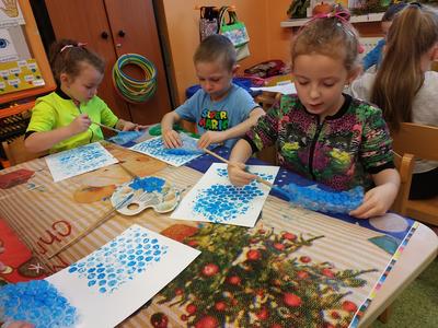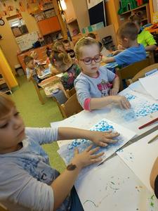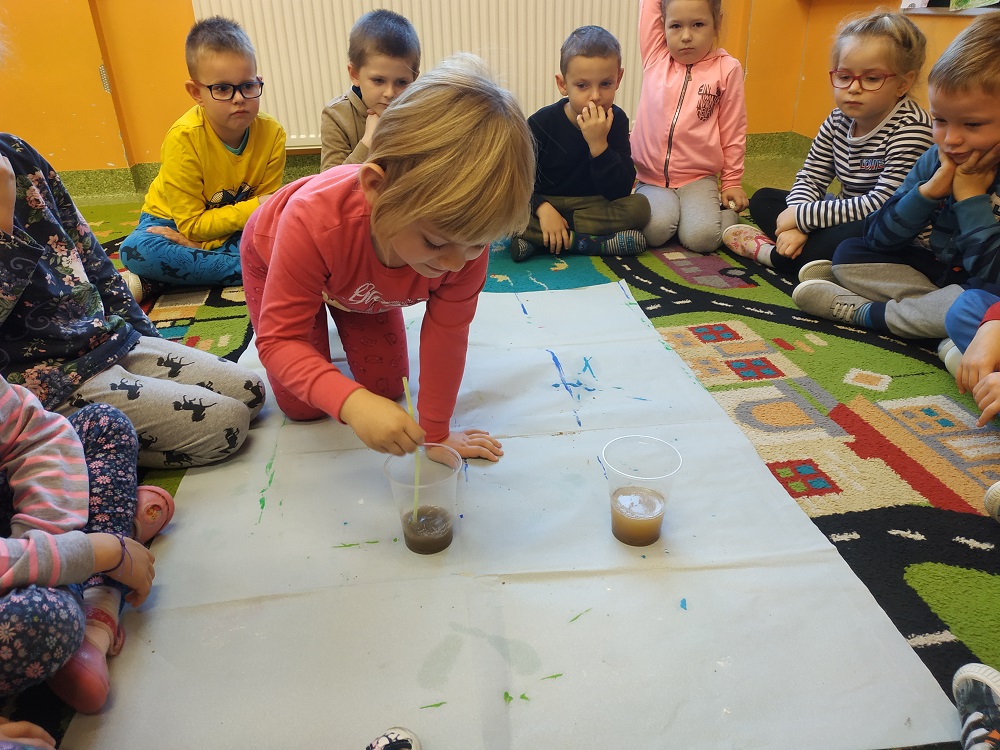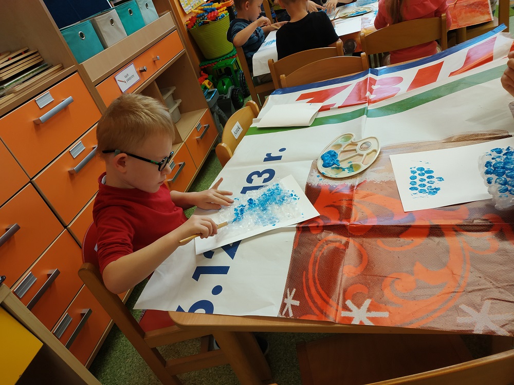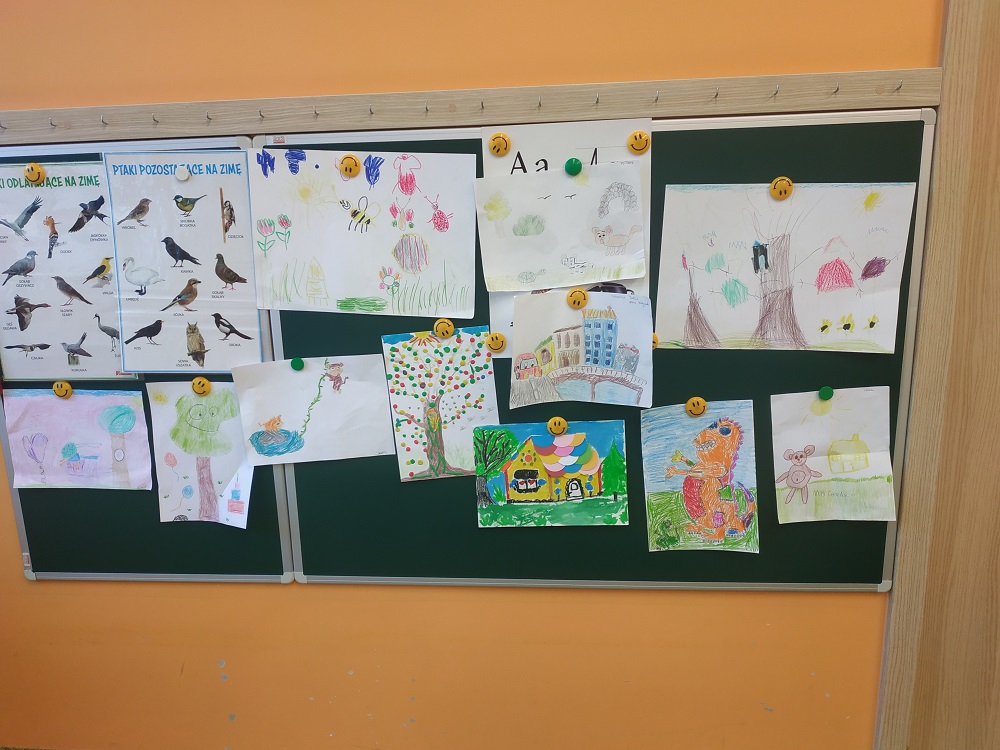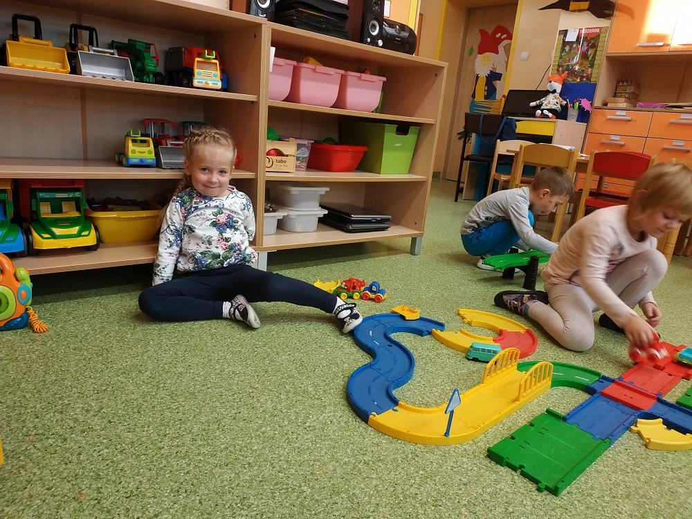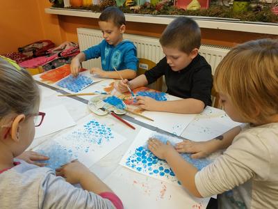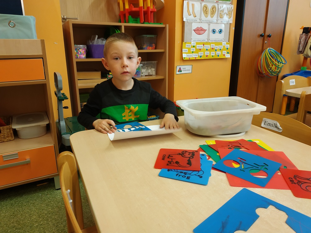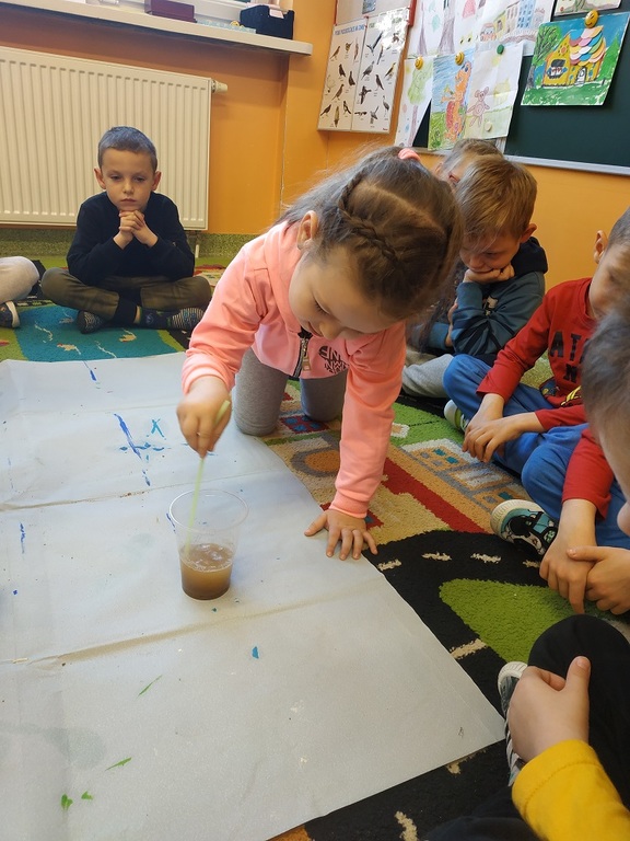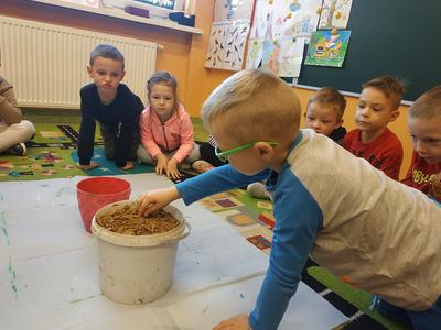 W ostatnim czasie dzieci z oddziału pięciolatków dowiedziały się między innymi jak wygląda glina i co z niej możemy „wyczarować”. Poznały jak powstaje chleb. Omawialiśmy tematykę związaną z jesienną pogodą. Oprócz zabaw badawczych dzieci odkryły nowe literki „M” oraz „E”. W naszej grupie królowymi literek były: Maja, Martynka oraz Emilka. W ostatnich tygodniach zrobiliśmy wiele prac plastycznych między innymi przestrzenne dynie czy malowaliśmy deszczową pogodę oraz wyklejaliśmy parasol.
