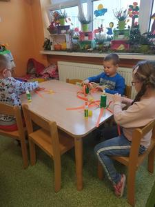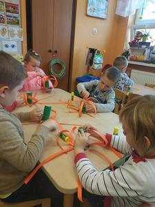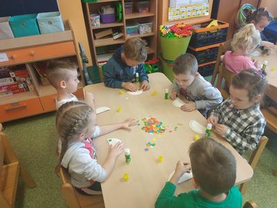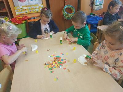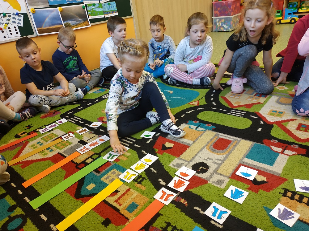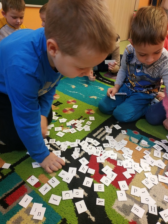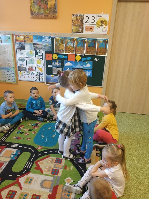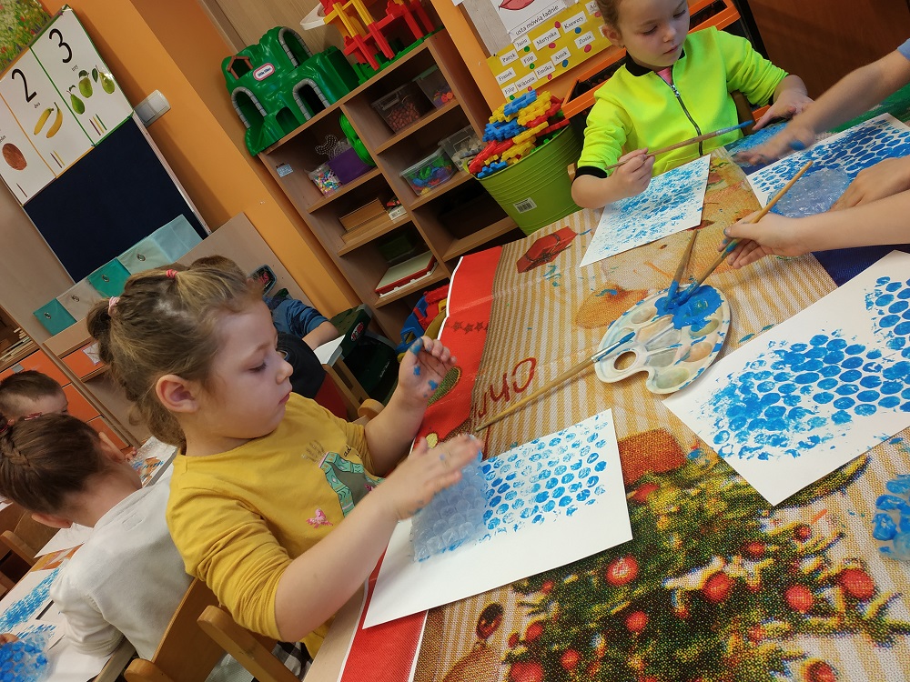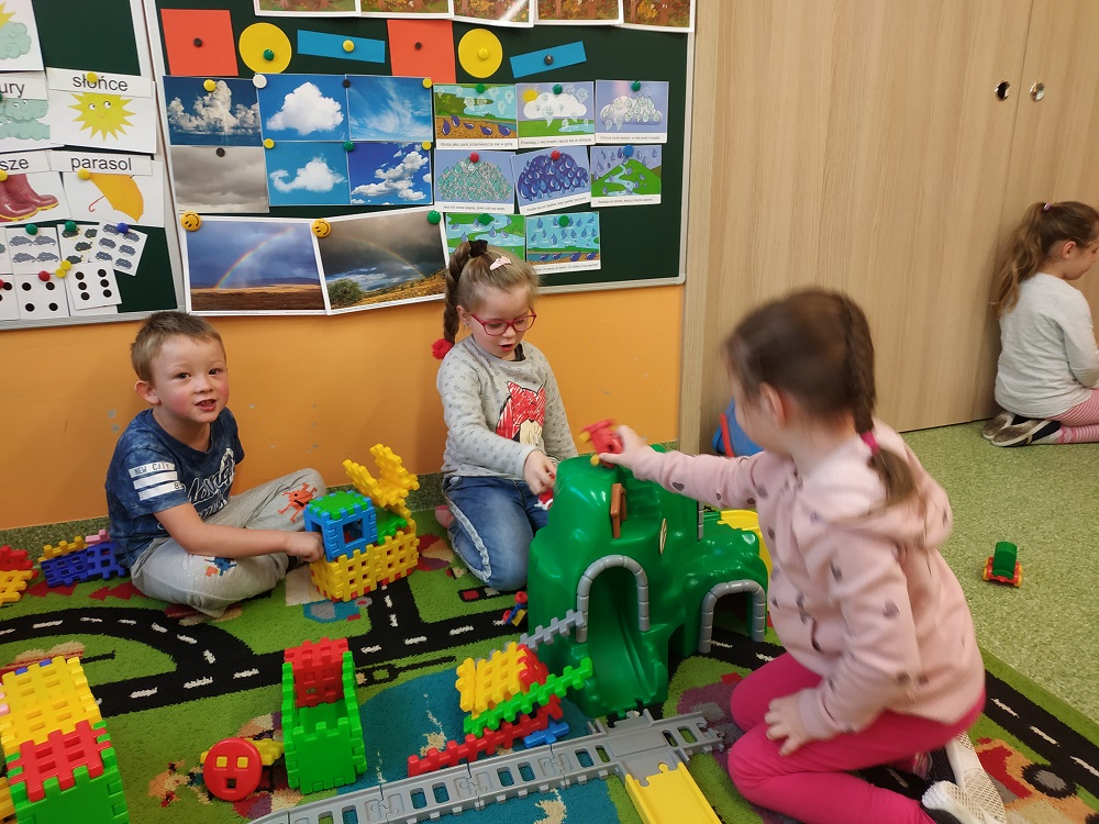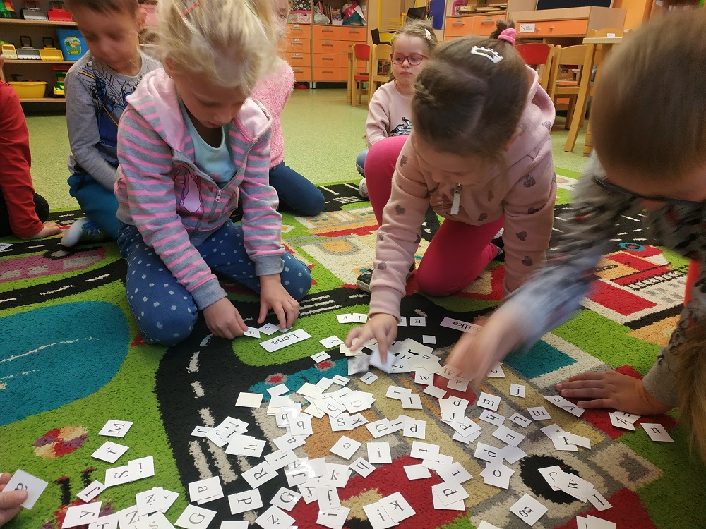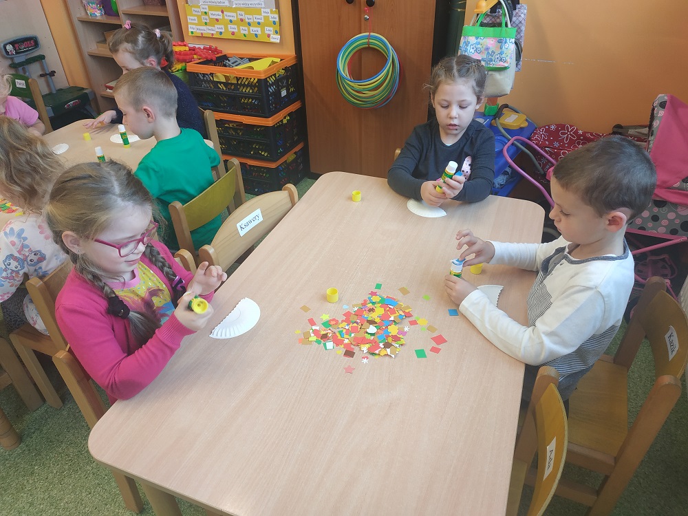 W ostatnim czasie dzieci z oddziału pięciolatków dowiedziały się między innymi jak wygląda glina i co z niej możemy „wyczarować”. Poznały jak powstaje chleb. Omawialiśmy tematykę związaną z jesienną pogodą. Oprócz zabaw badawczych dzieci odkryły nowe literki „M” oraz „E”. W naszej grupie królowymi literek były: Maja, Martynka oraz Emilka. W ostatnich tygodniach zrobiliśmy wiele prac plastycznych między innymi przestrzenne dynie czy malowaliśmy deszczową pogodę oraz wyklejaliśmy parasol.