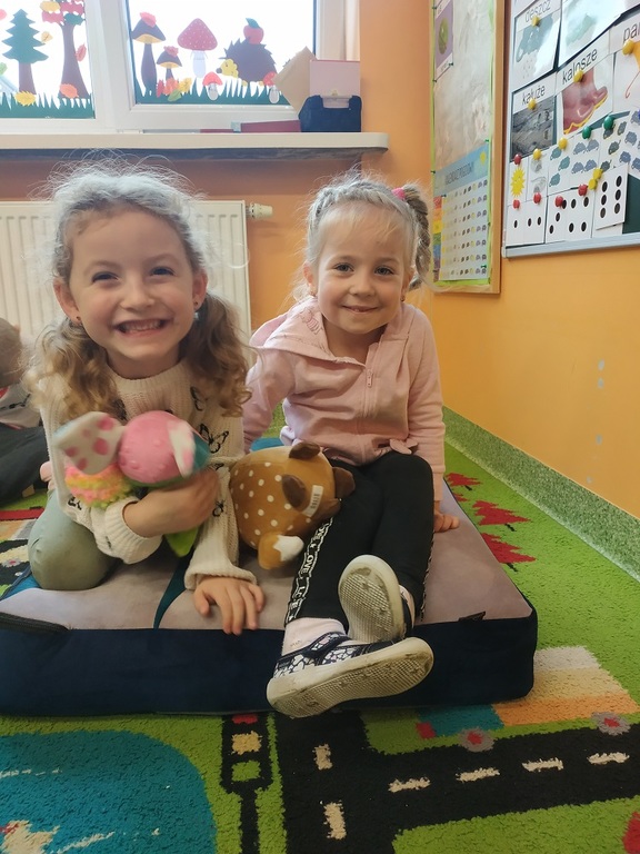 Po wytężonej pracy oraz wspólnych zabawach odpoczywaliśmy na poduszkach, które dzieci otrzymały od Pani Magdaleny Ratajczak. Za miłą niespodziankę serdecznie dziękujemy :).