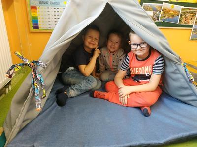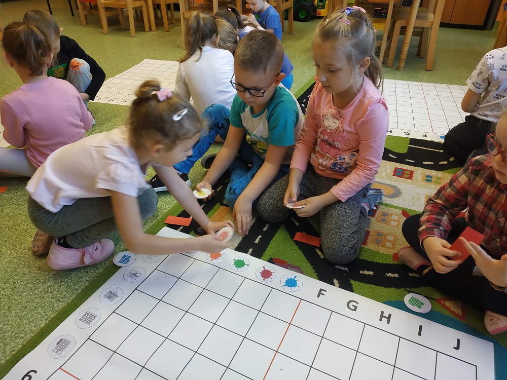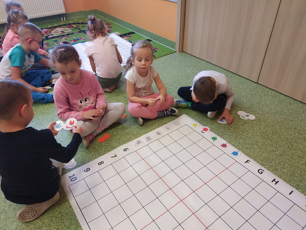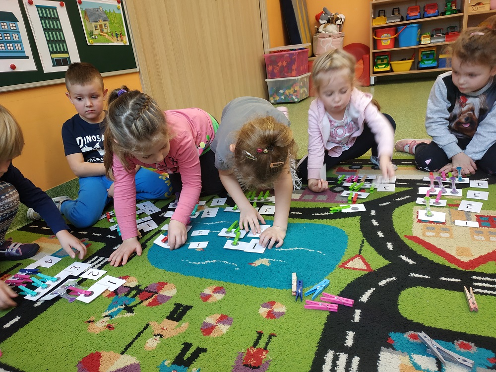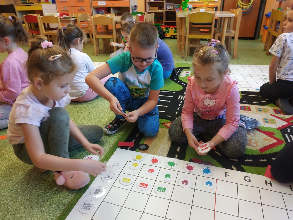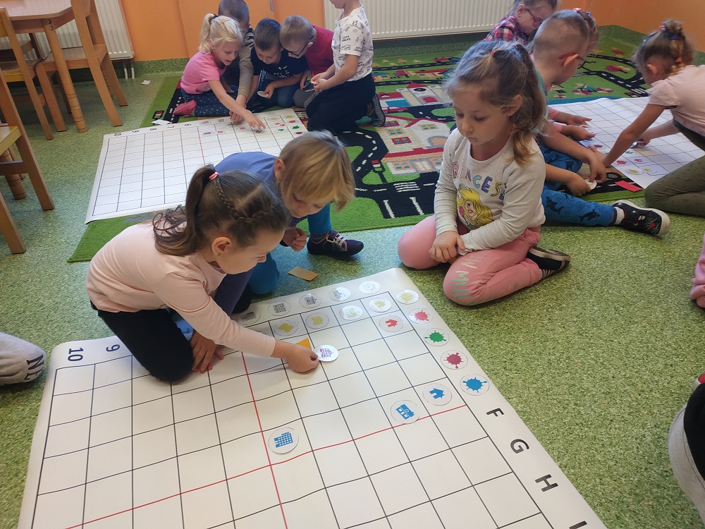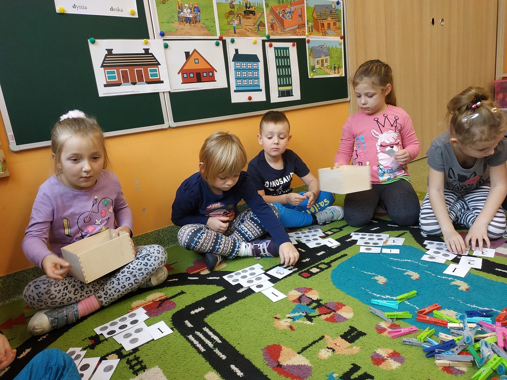 W ostatnim czasie dzieci z oddziału pięciolatków omawiały tematykę "Mój dom". Dzieci odkryły nową literkę „D”. W naszej grupie królem literki był Dawid. W ostatnich dniach zrobiliśmy wiele prac plastycznych oraz bawiliśmy się na macie do kodowania.