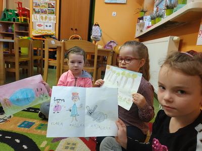 Kilka zdjęć z wspólnych zabaw w oddziale pięciolatków. W ramach czytania dzieciom w przedszkolu odwiedziły nas mama Ady, mama Jasia oraz mama Martynki i Kazika Serdecznie dziękujemy za poświęcony czas. W ostatnim czasie swoje święto miał Kamil, dlatego z radością wszyscy złożyli mu szczere życzenia :). Odkryliśmy literkę "k". W naszym oddziale królami literki byli: Kazik, Kamil i Ksawery. W piątek zrobiliśmy zdrowe kanapki, które z wielką radością zjedliśmy.