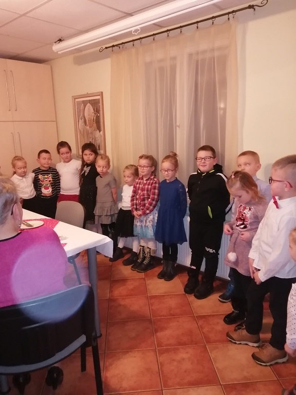 Przedszkolaki jak co roku brały udział w wigilii seniorów organizowanej przez Parafialny Zespół Caritas. Dzieci w tym dniu wspólnie zaśpiewały kolędę oraz wyrecytowały wiersz, następnie wręczyły seniorom własnoręcznie wykonane upominki.