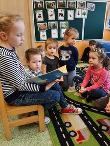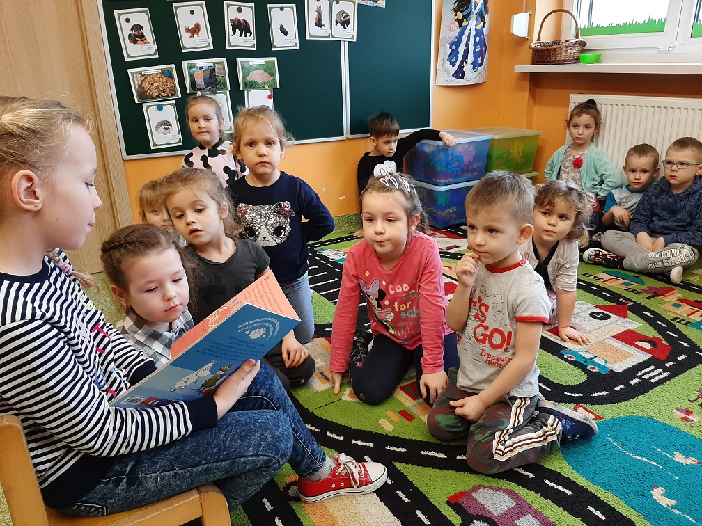 Julka dzisiaj pięknie czytała bajkę 3,4 latkom. Dla wszystkich przedszkolaków nagrała audiobooka,, Muminek i pierwszy śnieg"