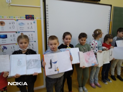 Pierwsze spotkanie czytelnicze w klasie pierwszej, po powrocie do szkoły 18 stycznia, poświęciliśmy na spotkanie z niezwykle przebojowymi czarnymi skarpetkami z książki Justyny Bednarek ,,Banda Czarnej Frotte”. Wszystkich miłośników podróży i niezwykłych przygód zapraszamy do obejrzenia naszych prac.