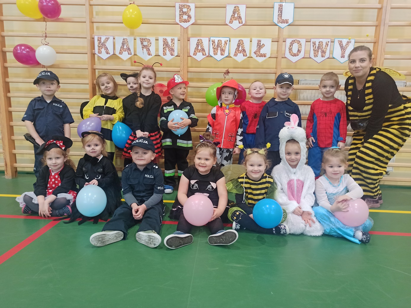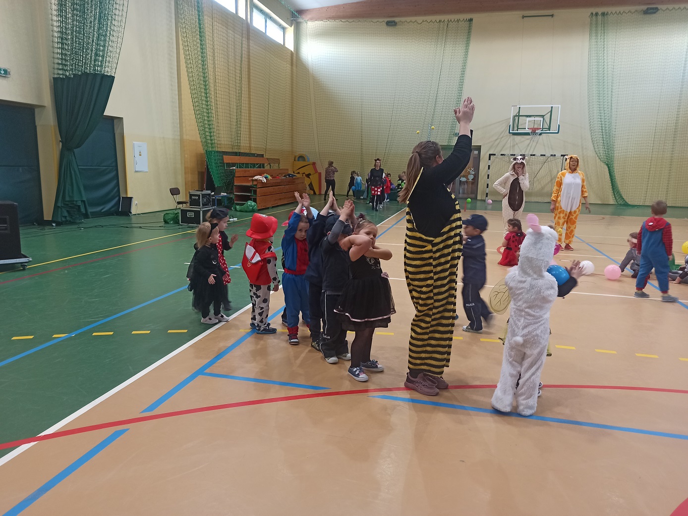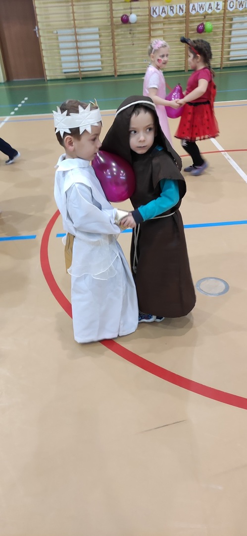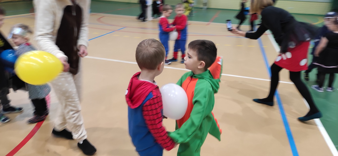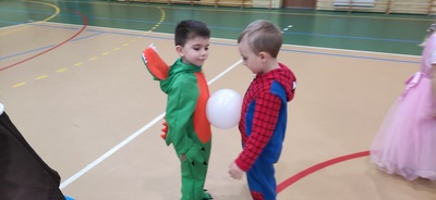 Bal karnawałowy w przedszkolu Dzieci świetnie się bawiły uczestnicząc wspólnie ze swoimi paniami w zabawach i pląsach. W sali w czasie tańców było bardzo kolorowo, wszyscy bawili się wesoło, uśmiech nie znikał z twarzy mimo chwilowego zmęczenia. Zdjęcia Zobacz również Wigilia 6-latków Wigilia 3-4 latków Starszaki poznają pojęcie czasu Bal karnawałowy w przedszkolu Dokarmiamy ptaki 3,4-latki Co słychać u zwierząt zimą ? 07 stycznia 2022 Oddziały przedszkolne Wydrukuj Udostępnij Wyświetlono: 138