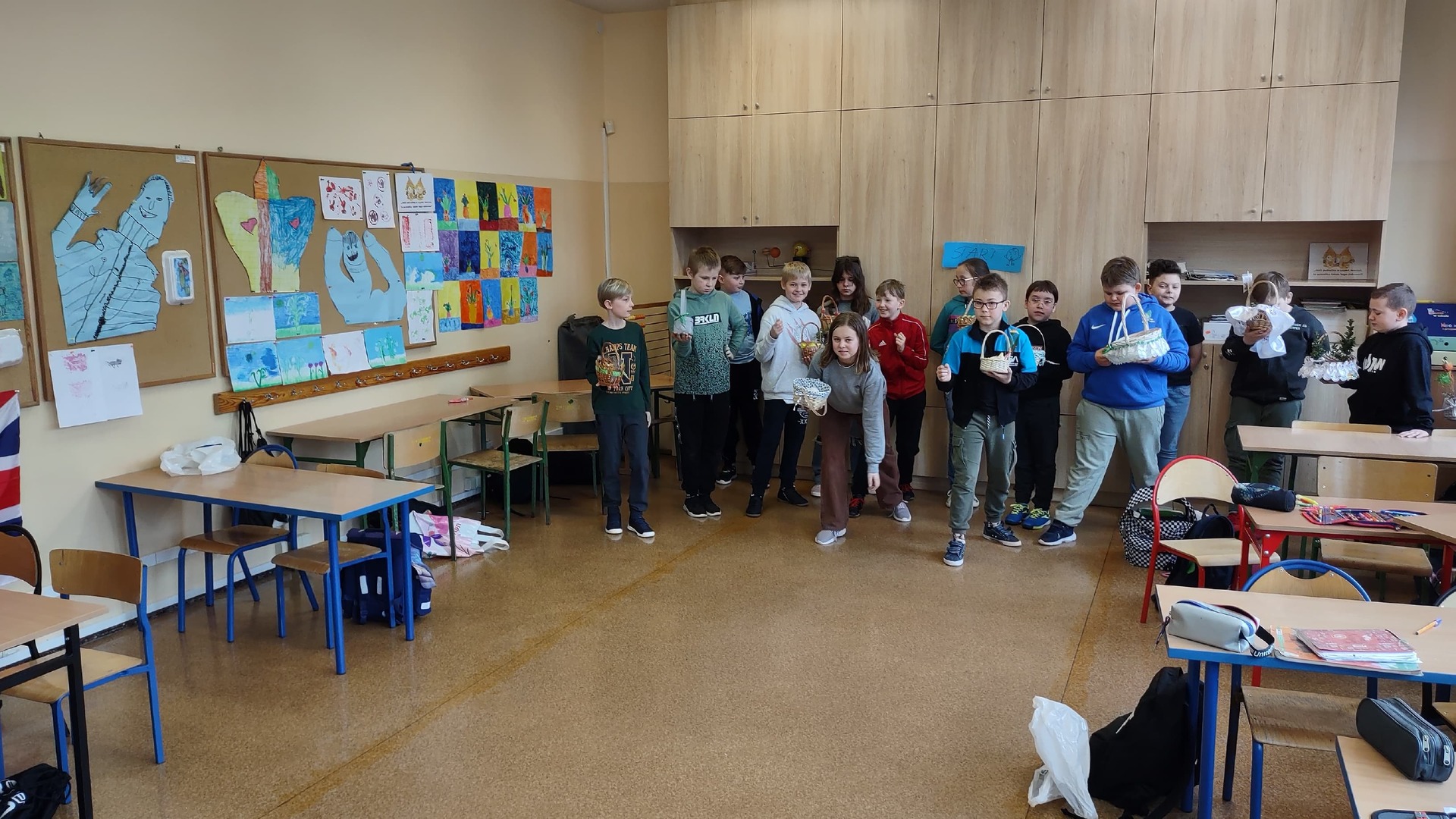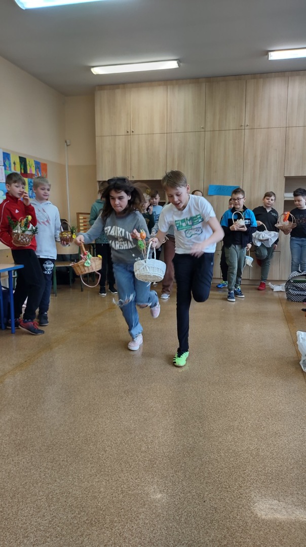 Easter basket run! Uczniowie klasy IV podczas dzisiejszych zajęć z języka angielskiego poznali tradycje wielkanocne w krajach anglojęzycznych. Ciekawym elementem lekcji był wyścig z koszyczkami. Zdjęcia Zobacz również Gry planszowe na lekcji historii w klasie VIIa Lista kandydatów przyjętych w postępowaniu rekrutacyjnym... Prace twórcze uczniów klas 4-8 z języka angielskiego Easter basket run! At the restaurant Święto Szkoły 08 kwietnia 2022 Aktualności Wydrukuj Udostępnij Wyświetlono: 180