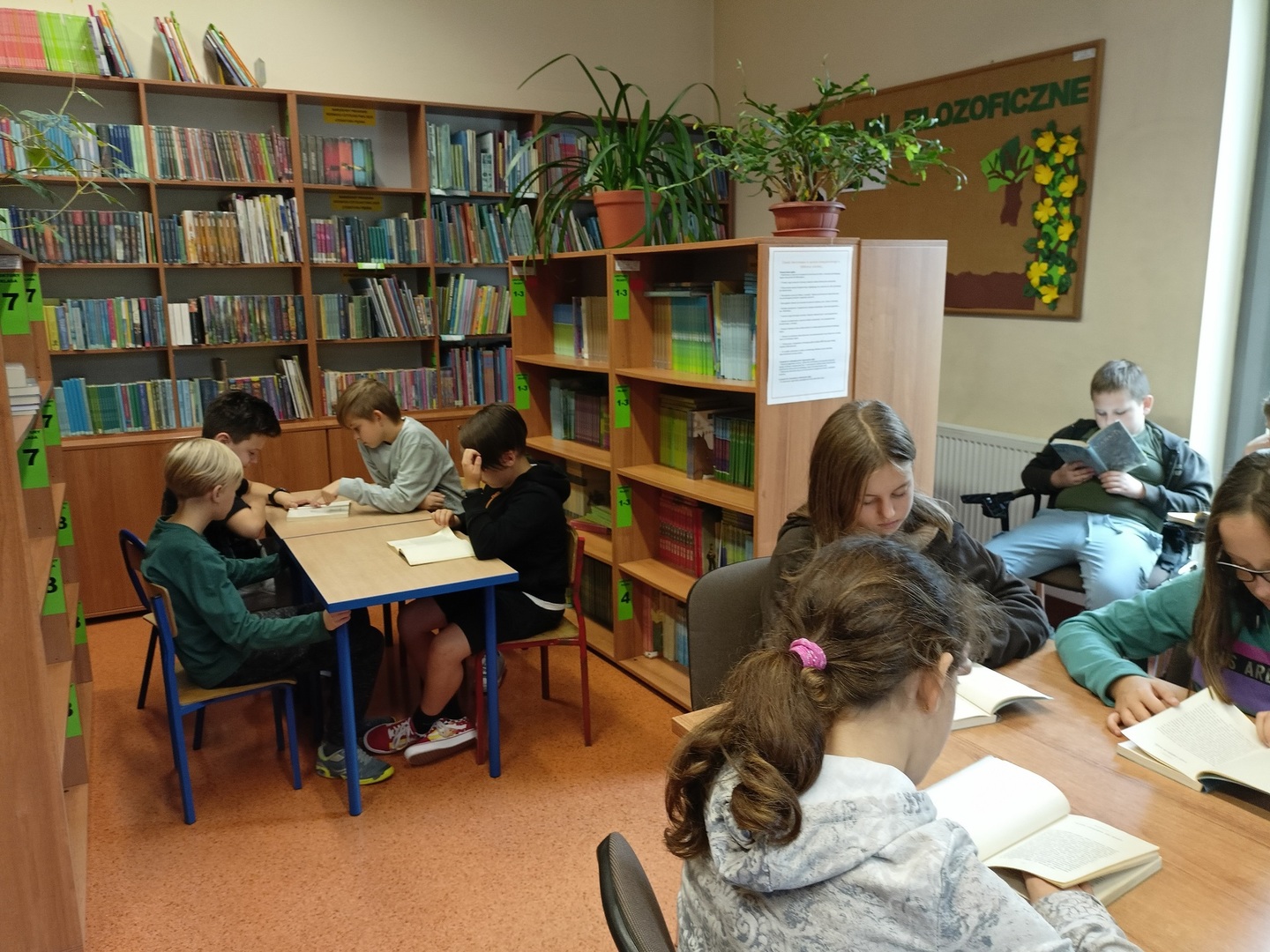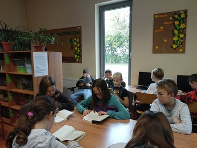 W bieżącym roku szkolnym tylko w ramach zajęć popołudniowych, przy współpracy ze świetlicą szkolną, bibliotekę odwiedziło 834 uczniów. Zgodnie ze swoimi zainteresowaniami uczniowie przychodzili czytać książki, rozwijali umiejętności malarskie korzystali również z trzech stanowisk komputerowych.