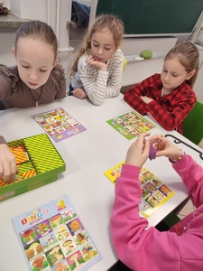 Na zajęciach świetlicowych odbyły się rozgrywki w Memo Bingo Grzyby. Jest to gra pamięciowa. Jej zadaniem jest ćwiczenie pamięci wzrokowej i spostrzegawczości, ale przede wszystkim jest to dobra zabawa i nauka. Gra pomaga w nauce rozróżniania grzybów leśnych, jadalnych i trujących występujących w Polsce.