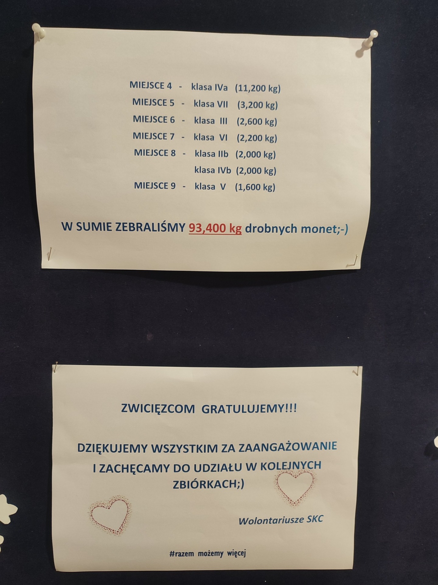Choć to drobne monety, ich siła okazała się ogromna. Dzięki zaangażowaniu uczniów uzbieraliśmy pokaźną kwotę, która zostanie przekazana na cele charytatywne. Każdy grosz to gest serca – a razem stworzyliśmy piękną falę dobra.