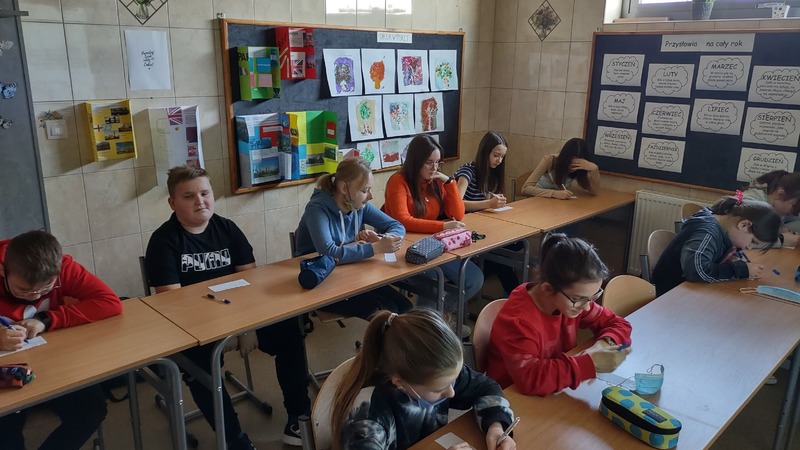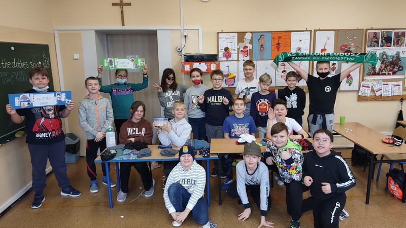 Po podsumowaniu projektu edukacyjnego, z gościnnym udziałem Pani Dyrektor i Wicedyrektor, uczniowie klasy IV odgrywali dialogi konwersacyjne w sklepie odzieżowym. Stworzyli scenerię oraz przygotowali potrzebne...