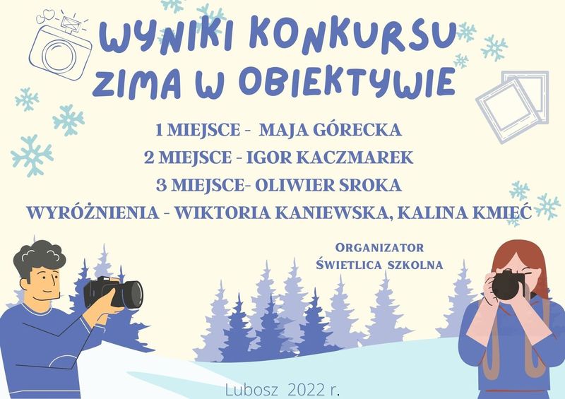 11 marca 2022 Świetlica szkolna i stołówka Rozstrzygnięcie konkursu "Zima w obiektywie" Galeria: https://www.facebook.com/media/set/?set=a.3168624553466773&type=3 Czytaj więcej