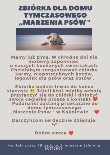 05 stycznia 2022 Aktualności Zbiórka dla domu tymczasowego "Marzenia psów" Od poniedziałku do środy w naszej szkole organizujemy zbiórkę karmy, niepotrzebnych koców, legowisk dla psów i kotów. Liczymy na pomoc. Za zbiórkę w naszej szkole odpowiedzialny... Czytaj więcej