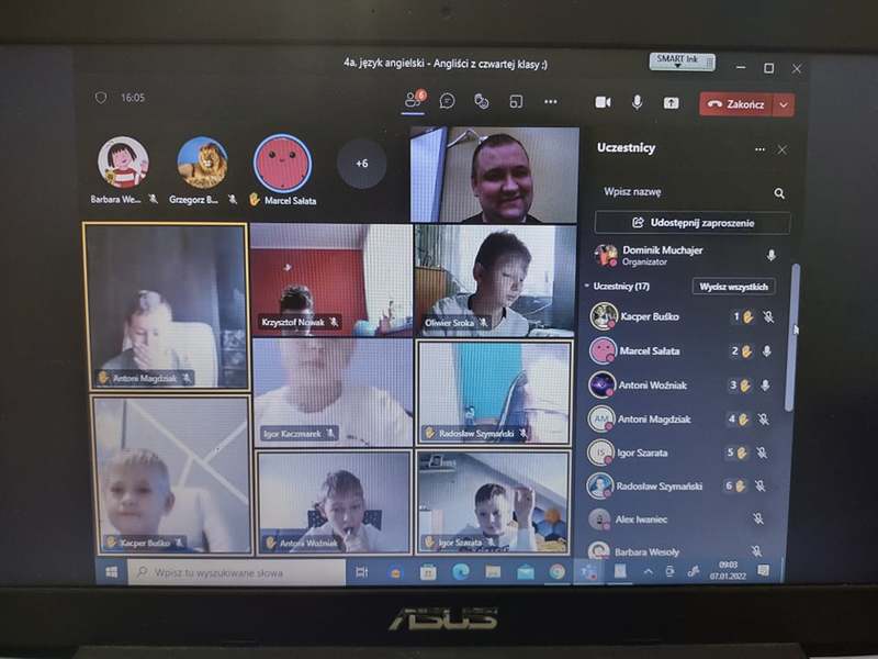 07 stycznia 2022 Aktualności Konwersacje w klasie czwartej Podczas dzisiejszych zajęć online w aplikacji Teams, uczniowie klasy czwartej prowadzili konwersacje z nauczycielem w języku angielskim. Czytaj więcej